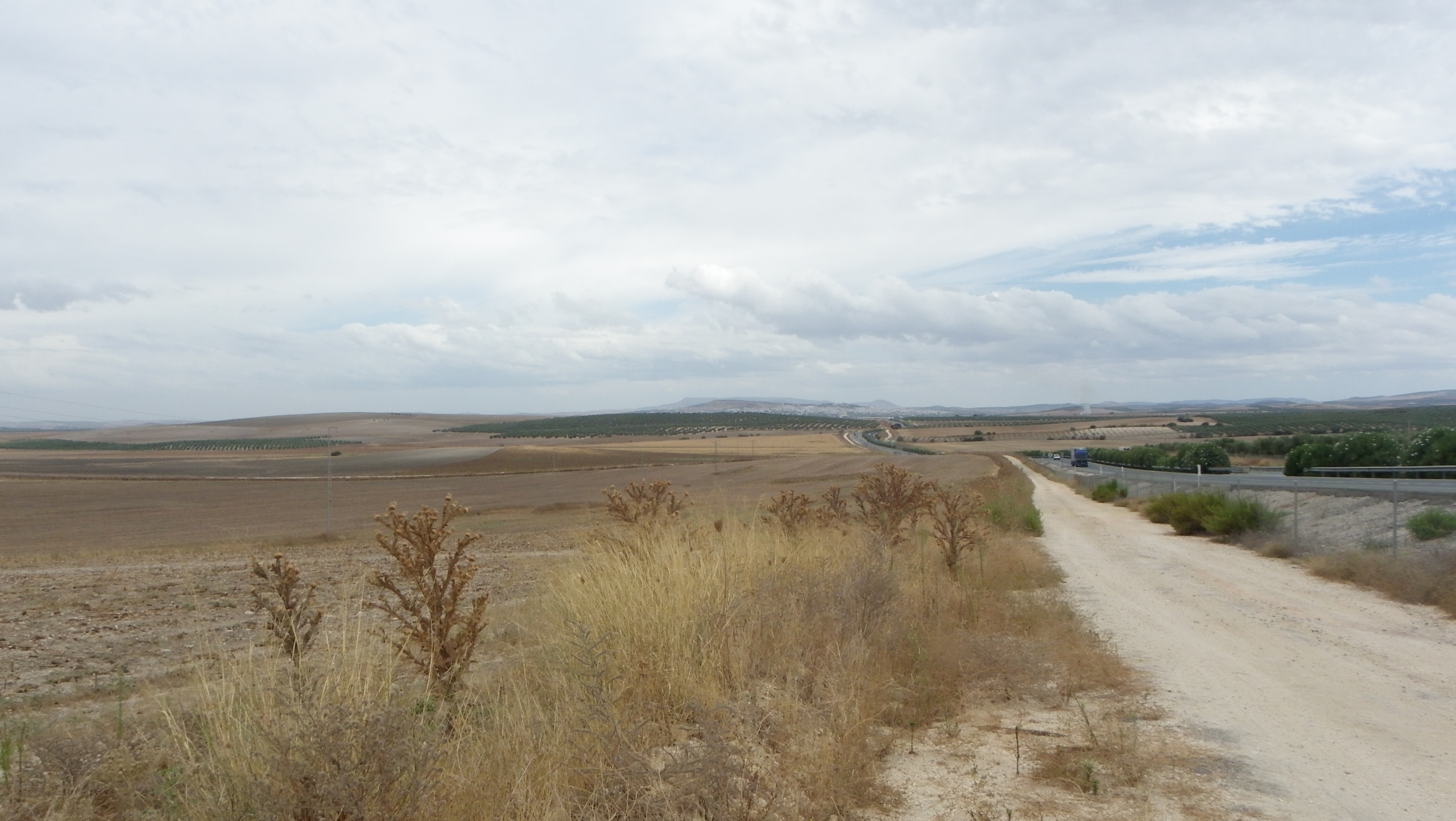 Vista de la colada de Morón a Osuna llegando a la Puebla desde ésta última. Su anchura legal es de 33,5 mts