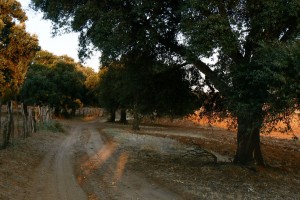 Paisaje de encinas que circunda la vereda de Sevilla en las inmediaciones de Monte Palacio