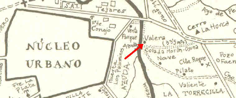 La punta de la flecha roja señala el lugar exacto de nuestra localidad descrito en la obre de Hernando Colón