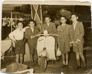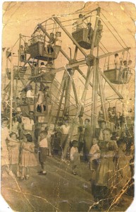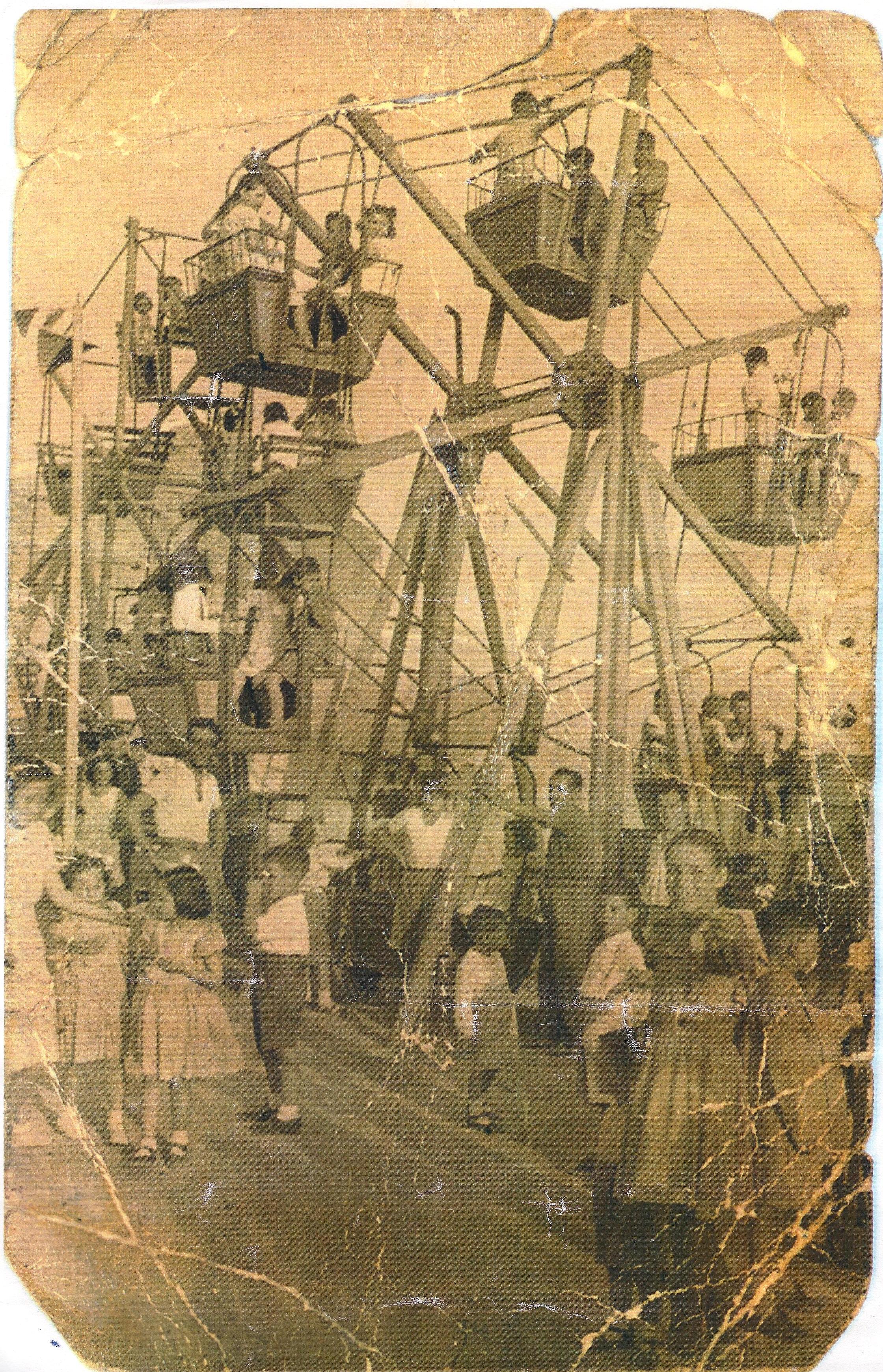 Niños en una atracción de la feria de La Puebla de Cazalla a mediados de los años 50