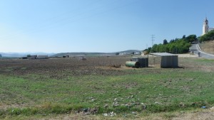 Lugar aproximado donde se autorizó en 1.817 la celebración de la primera feria de ganados de la Puebla de Cazalla en las inmediaciones del actual parque del Corbones.