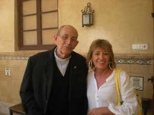 D. Gerardo en sus últimos años, acompañadado por la señora Dª María Josefa Ruda, vecina del convento y gran devota de la Virgen del Carmen
