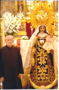 El padre Gerardo posa junto a su querida Virgen del Carmen del convento de Osuna